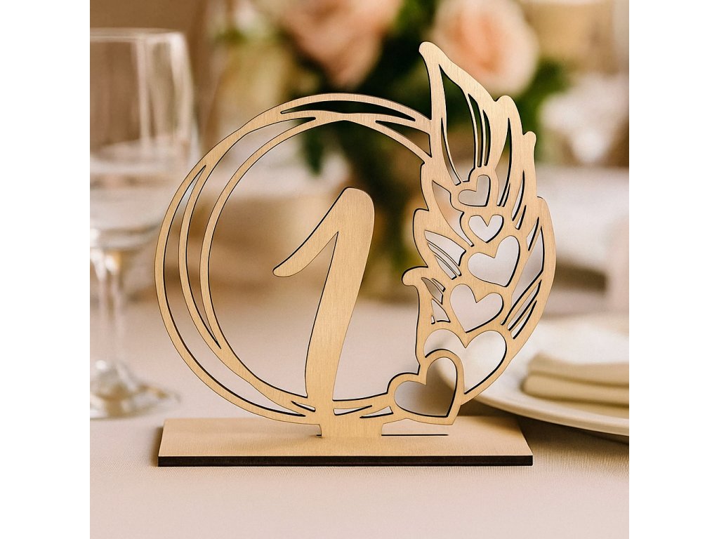Čísla jsou vyřezaná z kvalitní březové překližky o tloušťce 3 mm. Každý kus zdobí jemný motiv lístků, který dodává dekoraci lehkost a romantický nádech. Díky svému tvaru působí originálně a vkusně.