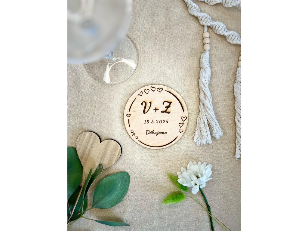 Do poznámky k objednávce prosím uveďte jména či iniciály a datum svatby. Každý podtácek vyrábíme na míru, s důrazem na detail a kvalitu.