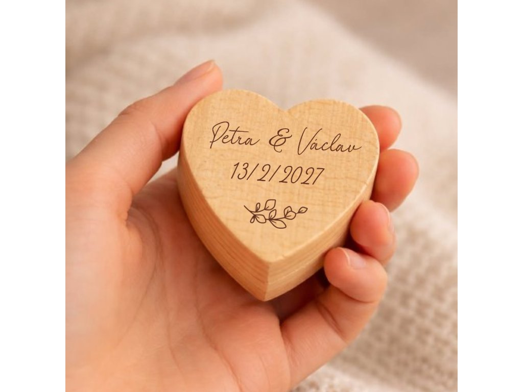 Možnost personalizovaného gravírování – Na přání vám na víčko krabičky vygravírujeme iniciály, jména nebo datum svatby. Krabička se tak stane jedinečnou památkou na váš svatební den.