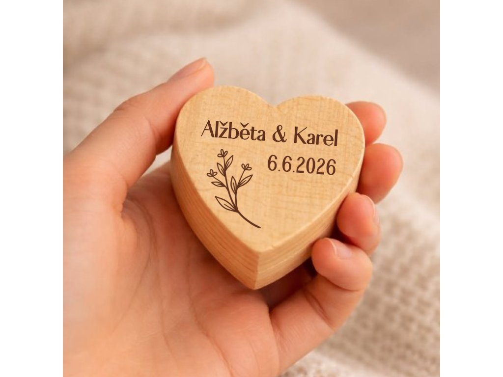 Možnost personalizovaného gravírování – Na přání vám na víčko krabičky vygravírujeme iniciály, jména nebo datum svatby. Krabička se tak stane jedinečnou památkou na váš svatební den.