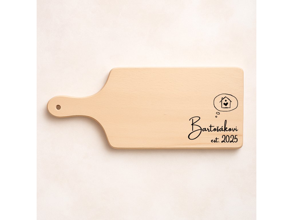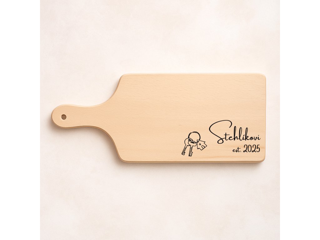 Stylové dřevěné prkénko z kvalitního dřeva, které přidá kouzlo každé kuchyni. Prkénko lze přizpůsobit gravírováním vlastního textu, motivu nebo věnování. Perfektní jako dárek pro rodinu, přátele nebo novomanžele, kteří si chtějí uchovat vzpomínky na výjimečné okamžiky.