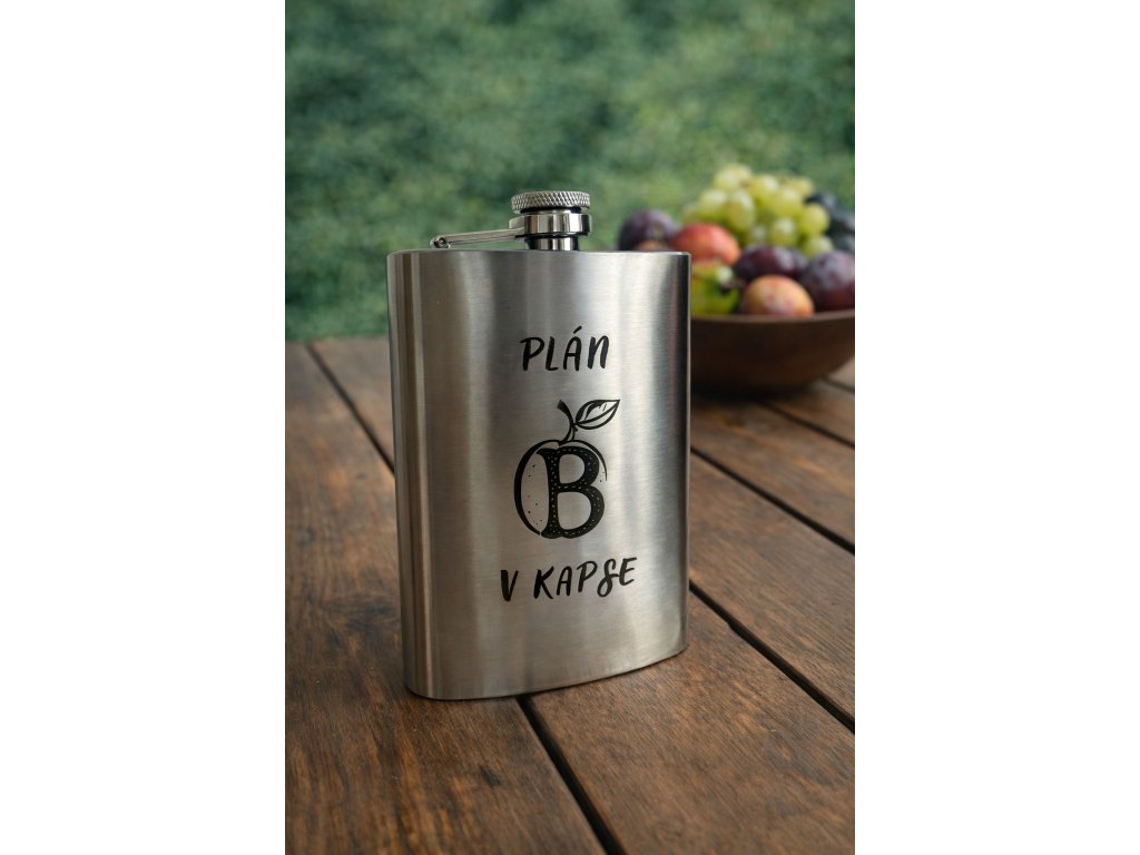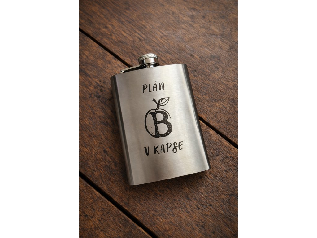 Nerezová placatka s gravírováním – Plán B v kapse (zvýhodněný kus)