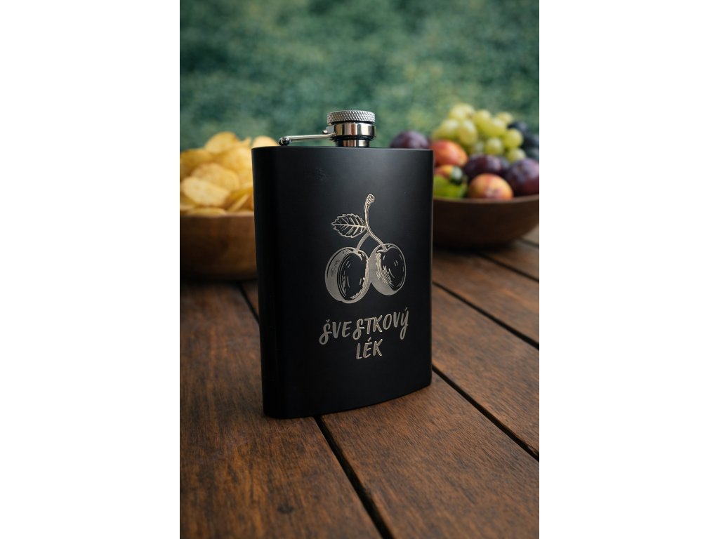 Nerezová placatka s gravírováním „Švestkový lék“ je vtipný, ale zároveň elegantní doplněk, který ocení každý milovník cestování, dobrodružství nebo jen drobných životních záloh.