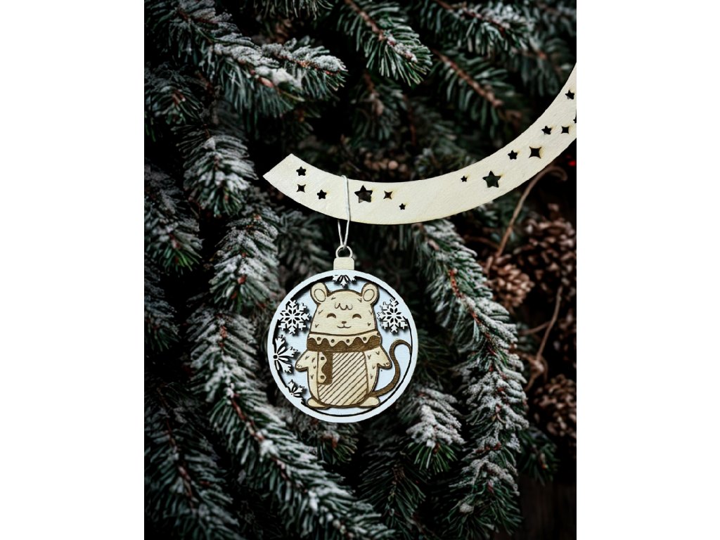 Vyřezávaná dřevěná 3D vánoční baňka s motivem myšáka, vyrobená z březové překližky v přírodní a bílé barvě. Hodí se k zavěšení na stromeček, adventní věnec nebo jako...