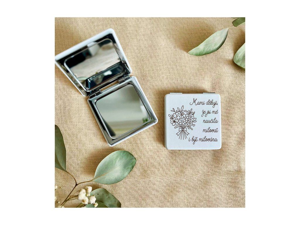 Malý dárek s velkým významem. Toto elegantní bílé koženkové kapesní zrcátko s jemným květinovým motivem je krásným symbolem lásky mezi maminkou a dcerou.